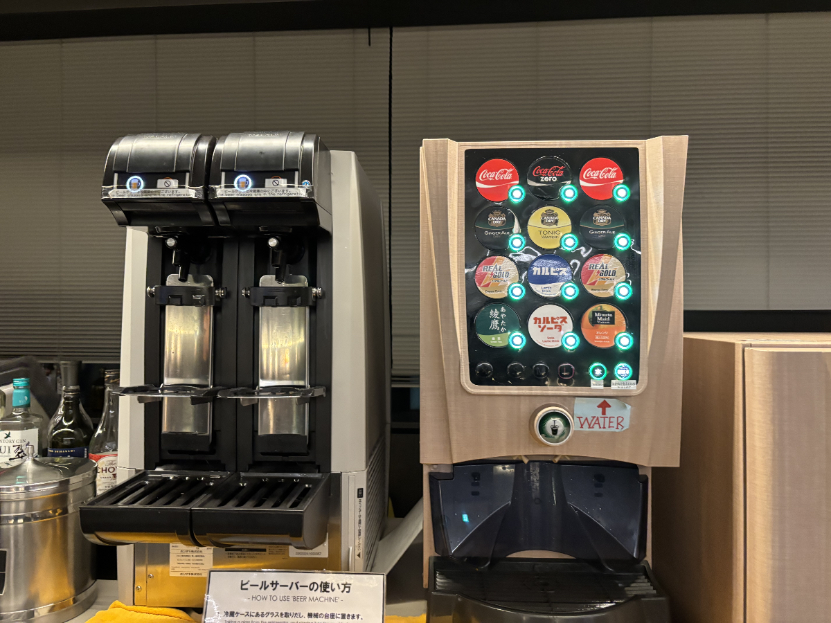 ドリンク類はペットボトルや缶での提供ではなく、ドリンクバーとビールサーバーでの提供です。