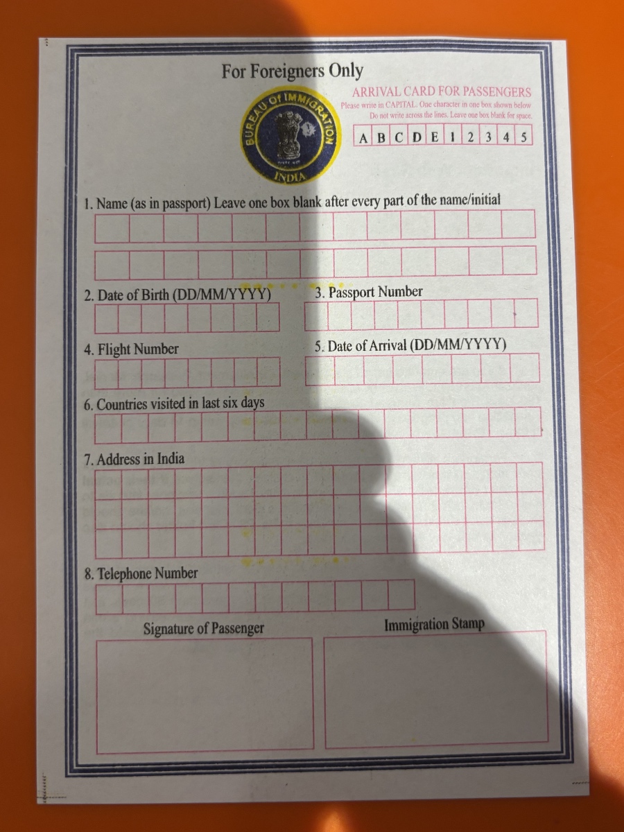 インド入国にはビザに加え、入国カードの記入が必要です。2025年10月からe-Arrival Cardが導入されましたが、紙の入国カードもしばらくは利用できます。
