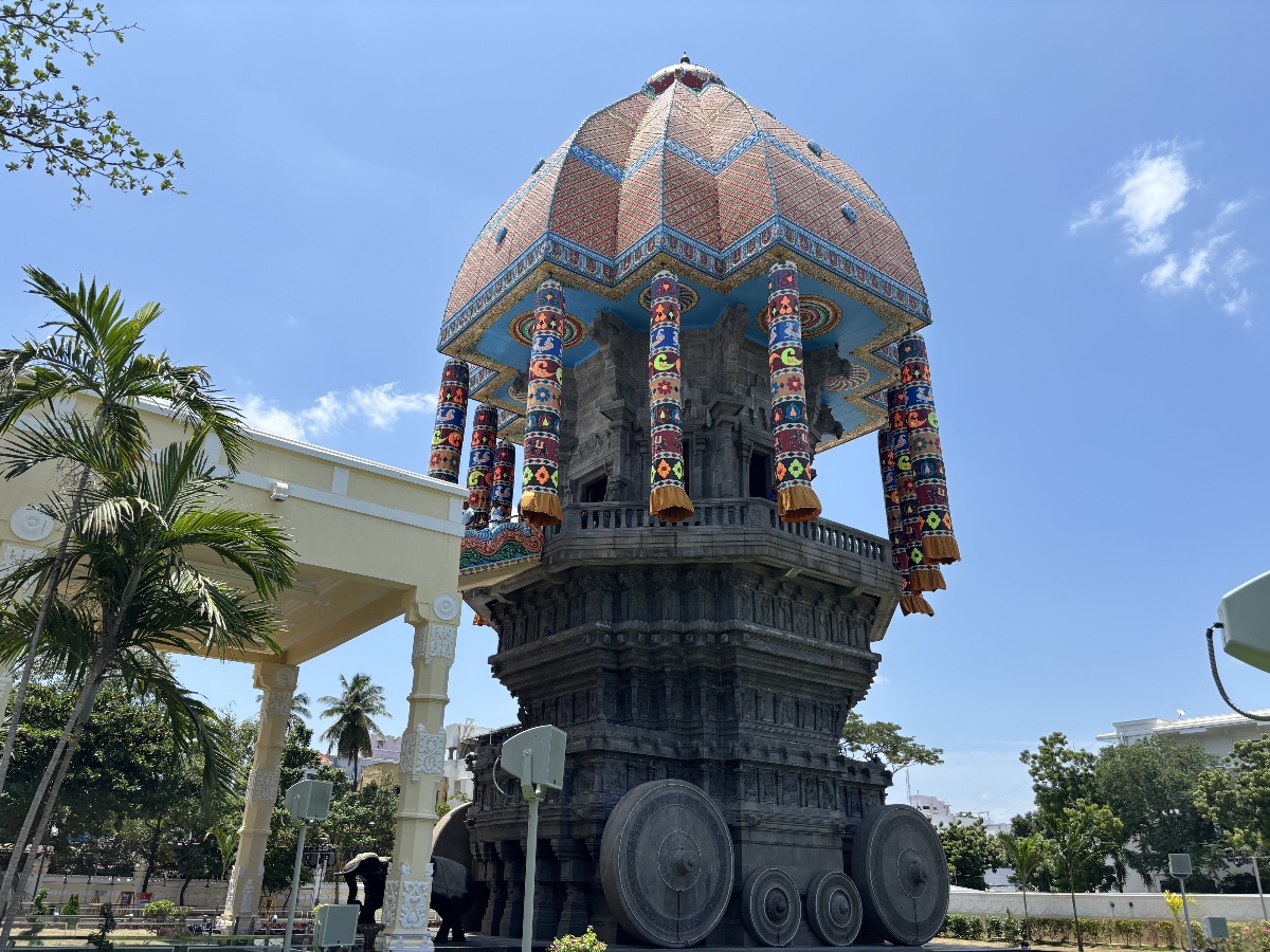 タミル文学の偉人・詩聖ティルヴァッルヴァルを讃える記念モニュメント。最大の見どころは、戦車(チャリオット)型の巨大な記念堂で、南インドらしい造形美と迫力があります。
