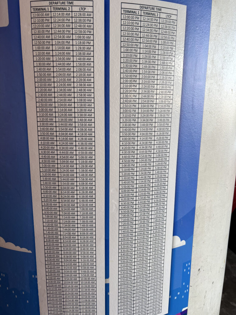 逆にターミナル1からターミナル2の移動は、アウトレットパークで停車する時間がありますので、おすすめしません。