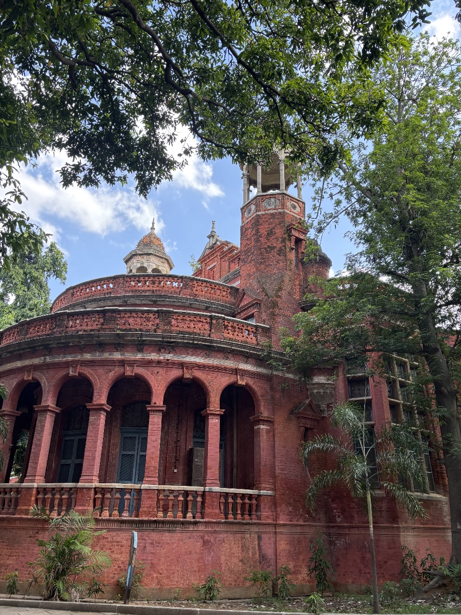 1906年に建設が始まり、1909年に完成しました。もともとは「ヴィクトリア記念堂(Victoria Memorial Hall)」として建てられたもので、イスラム建築とヨーロッパ建築の要素が融合した優美な外観が大きな特徴です。
