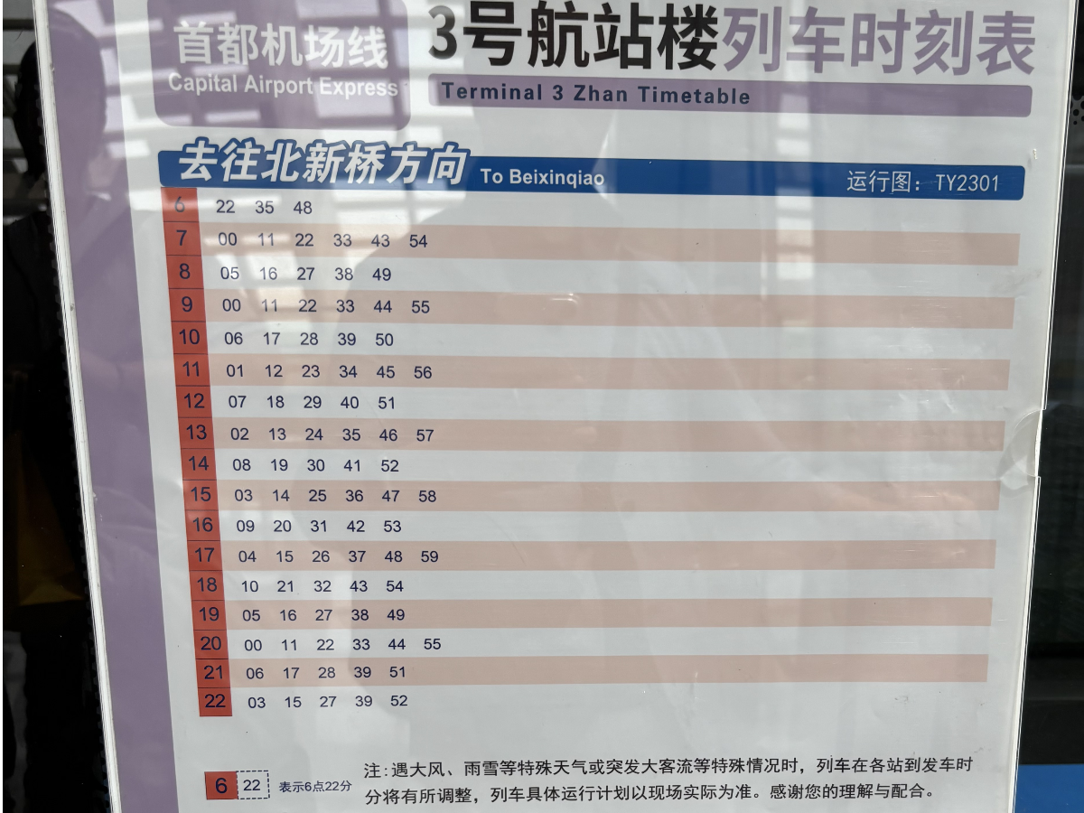 - エアポートエクスプレス(北京地铁首都机场线):最も速く、渋滞の影響を受けない鉄道アクセス
