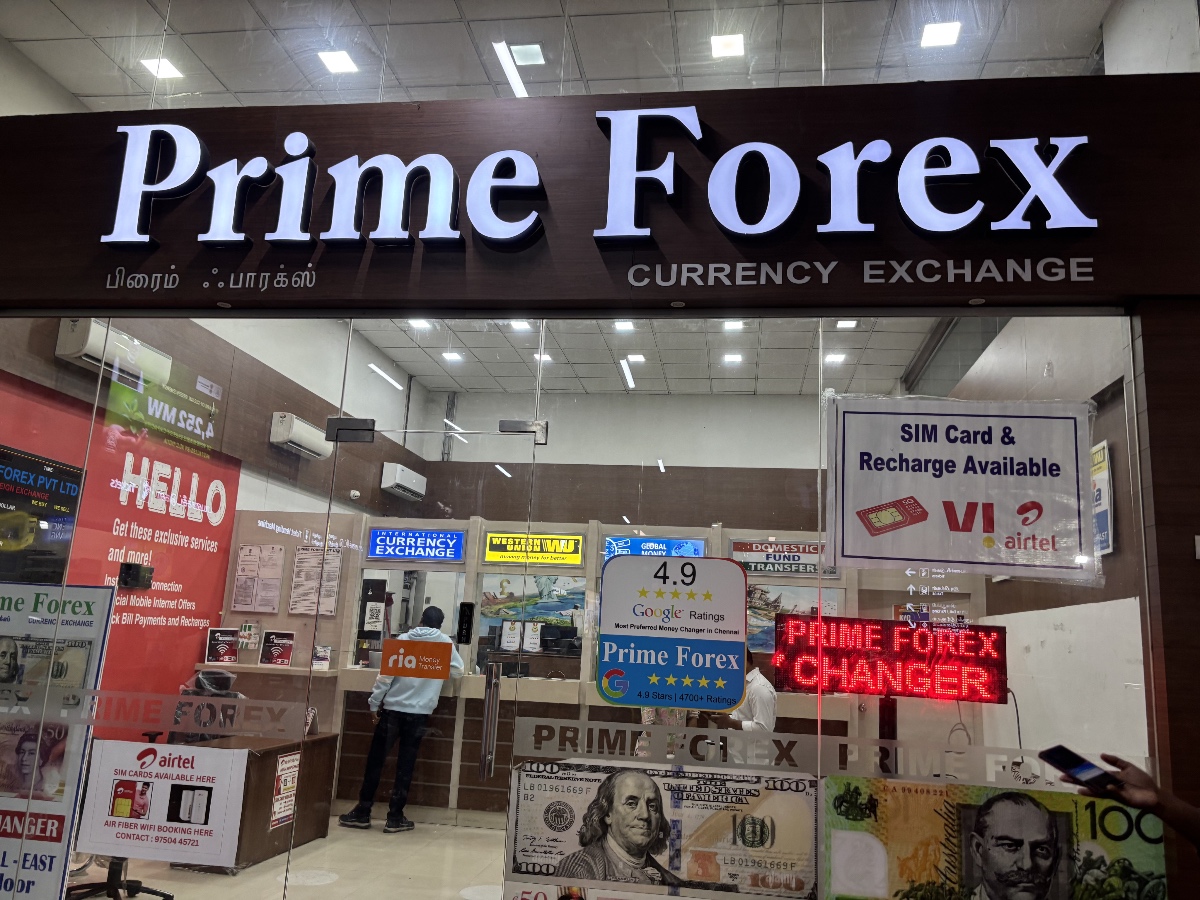 チケット窓口のすぐ隣に「Prime Forex」という両替所があります。Googleマップの口コミでも高い評価を得ており、空港で両替するより有利なレートで両替が可能です。