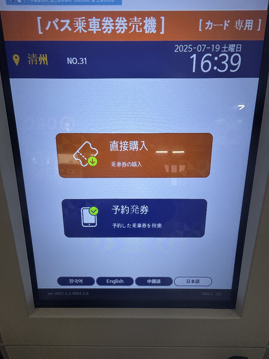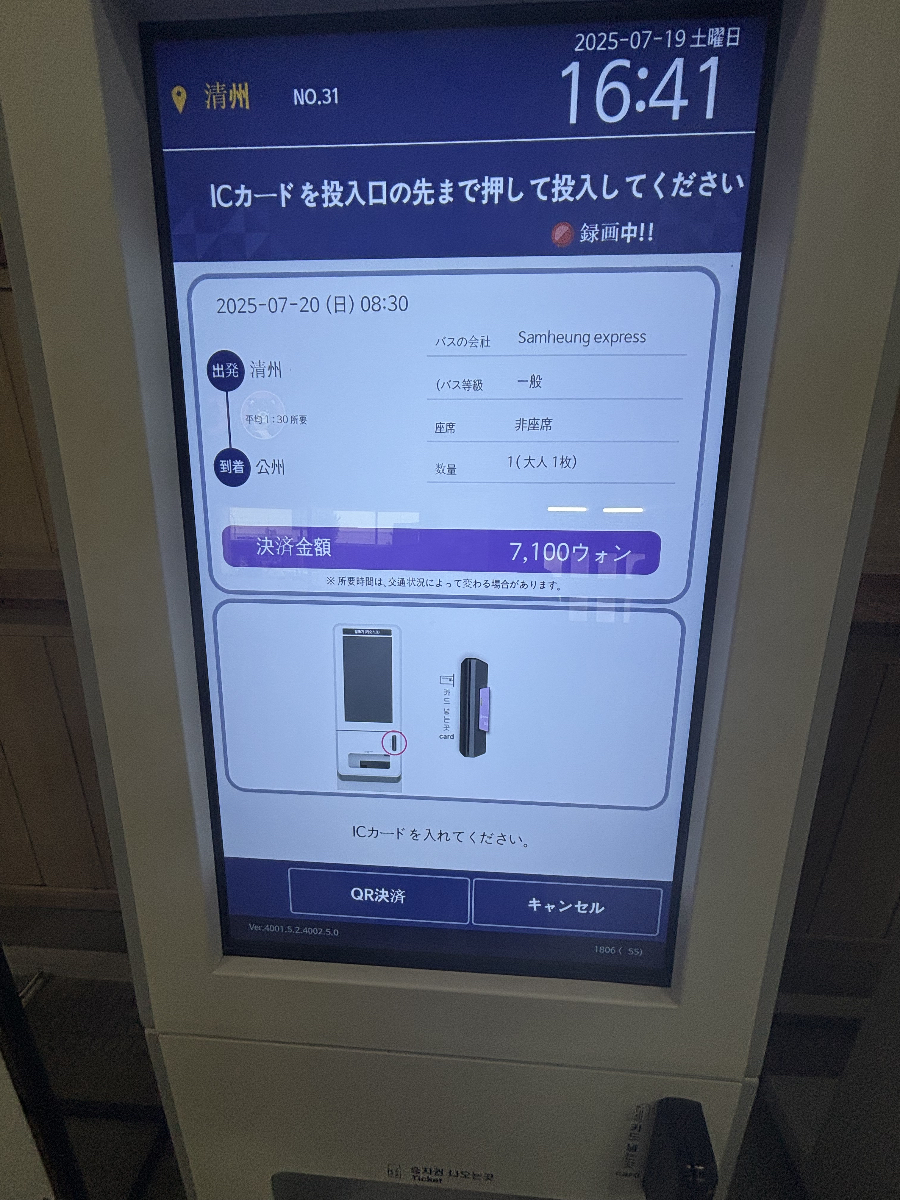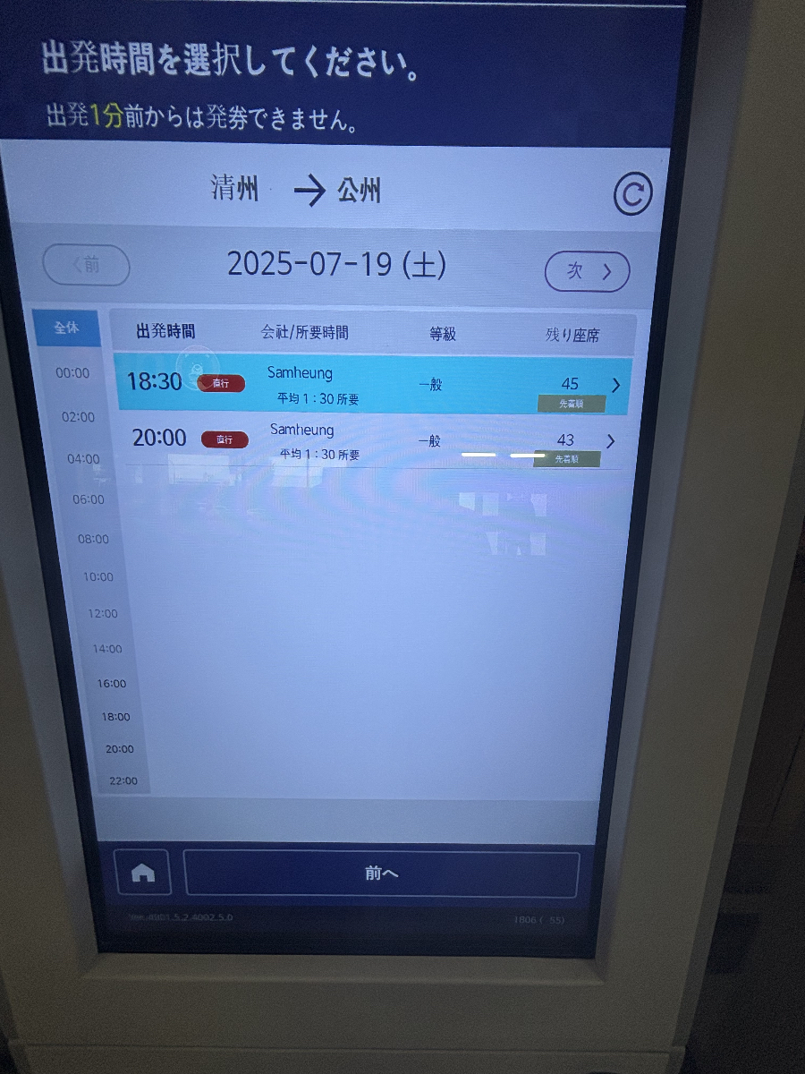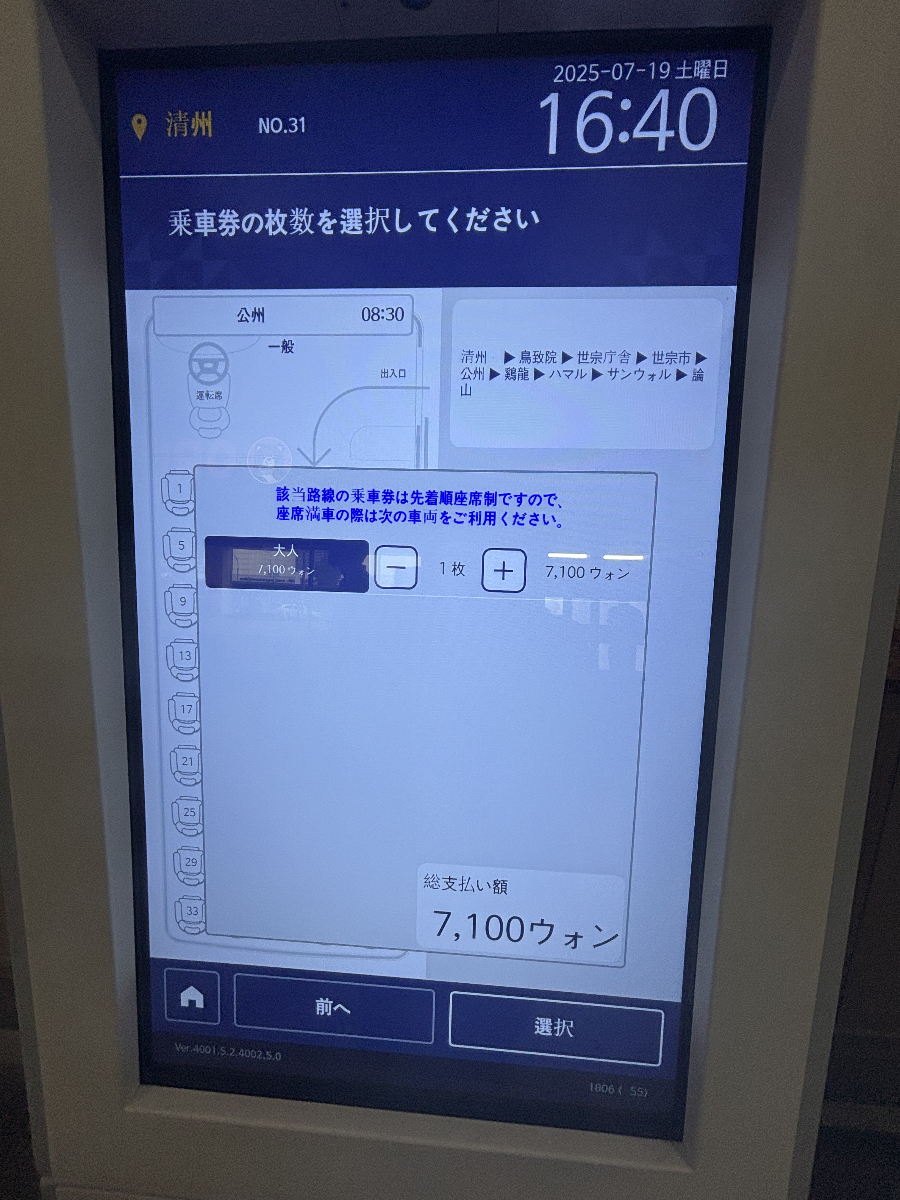 清州〜公州のルートはオンラインでは予約できませんので、バスターミナルでチケットを購入することになります。