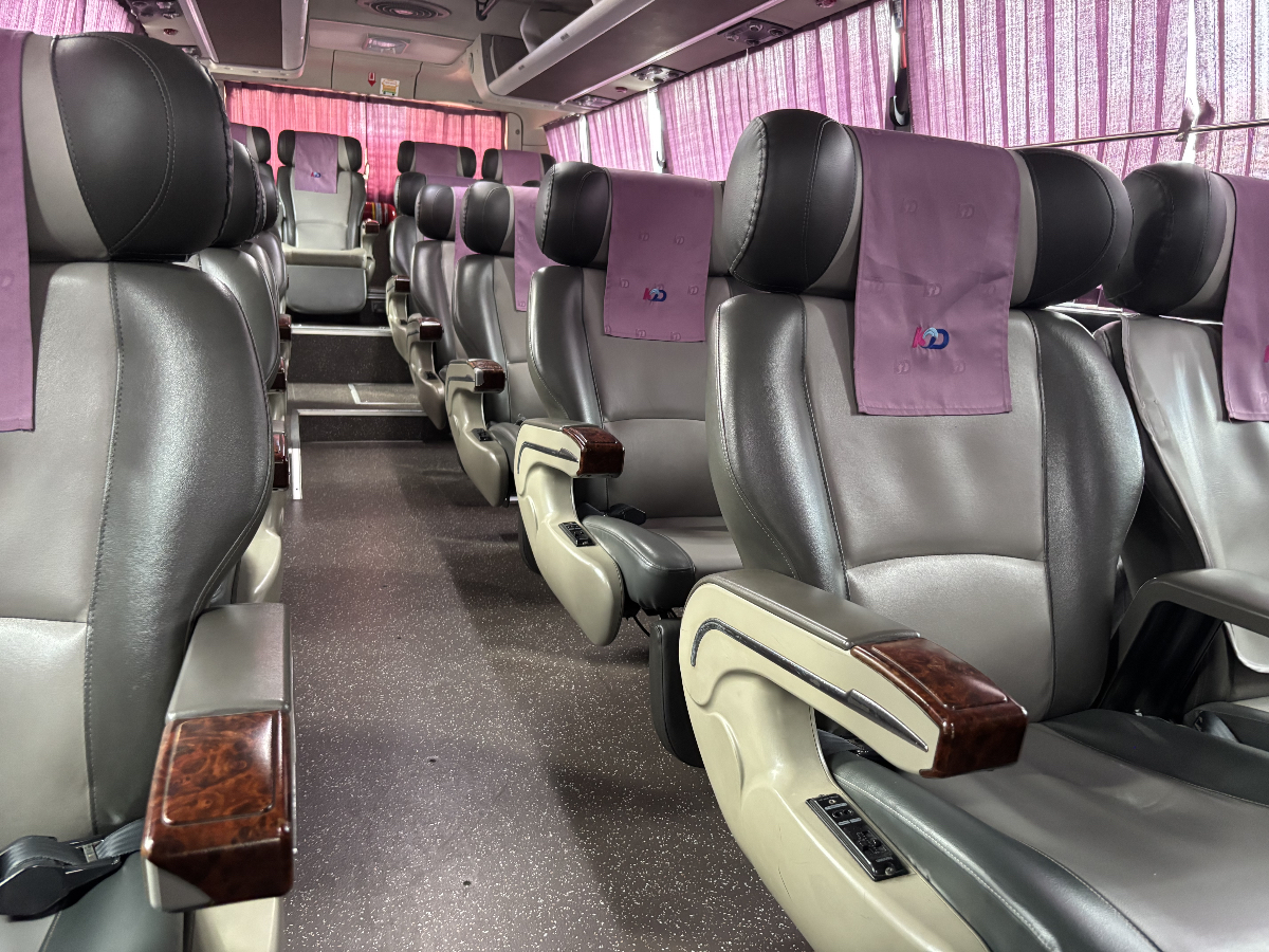 復路は2-2列の通常のタイプのものです。2-1列配置のバスと比べると、座席サイズだけでなく、設備も簡易的でした。