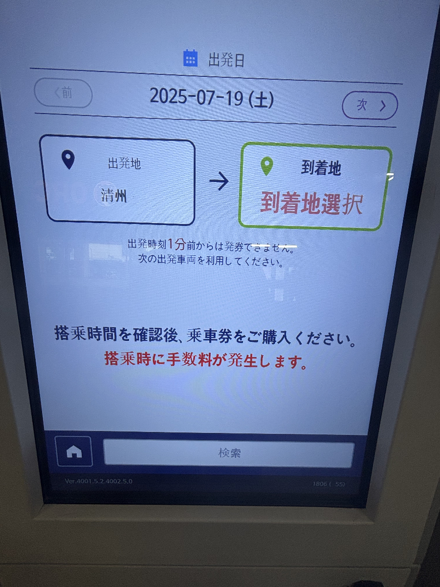 清州と同様で、自動券売機か窓口でチケットは購入できますが、窓口は時間帯によっては人がいないことがありますので、ご注意ください。
