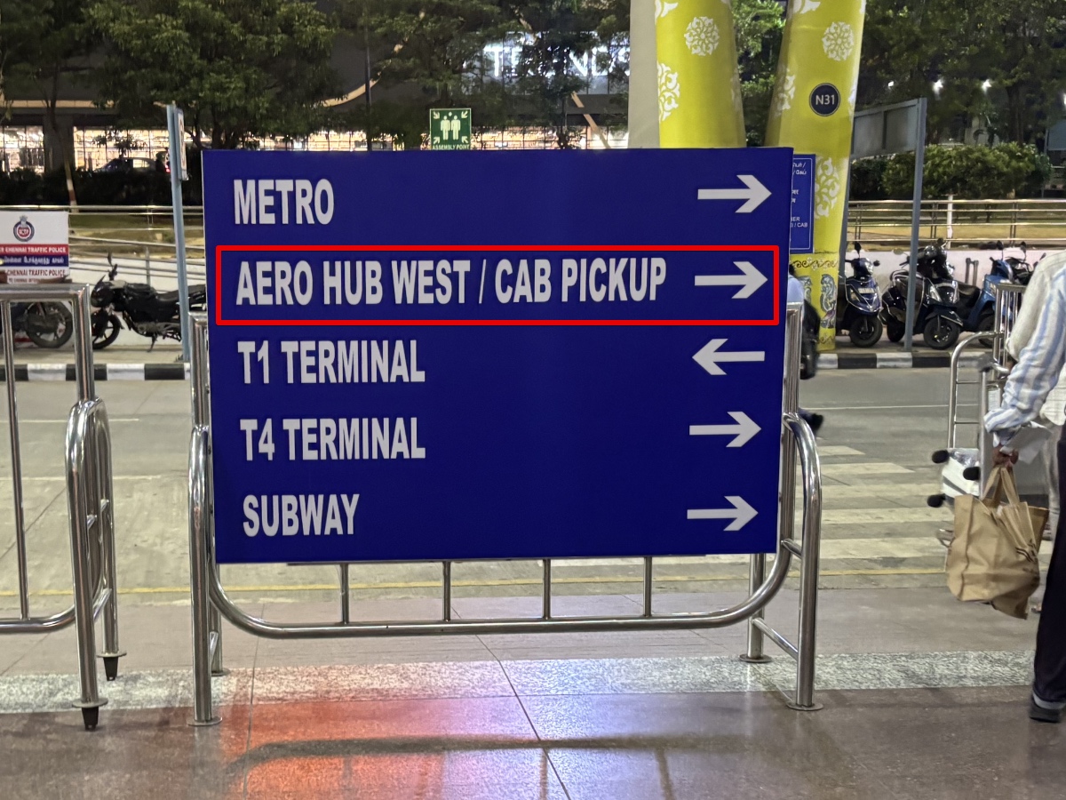 現在、すべての配車アプリ(Uber/Ola)のピックアップポイントは、「AEROHUB West 」の立体駐車場に集約されています。
