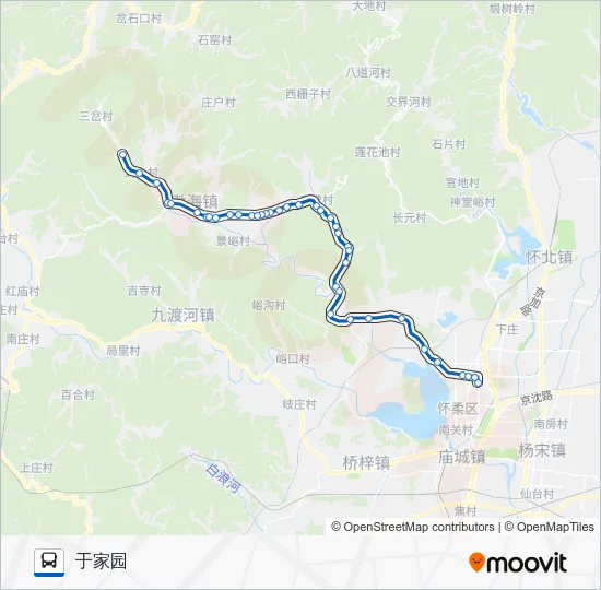 「怀柔北大街」に到着したら、「怀柔北大街→慕田峪环岛」というルートで慕田峪長城まで行きます。バス停は到着したバス停ではなく向かい側にあるバス停でバスを待ちます。