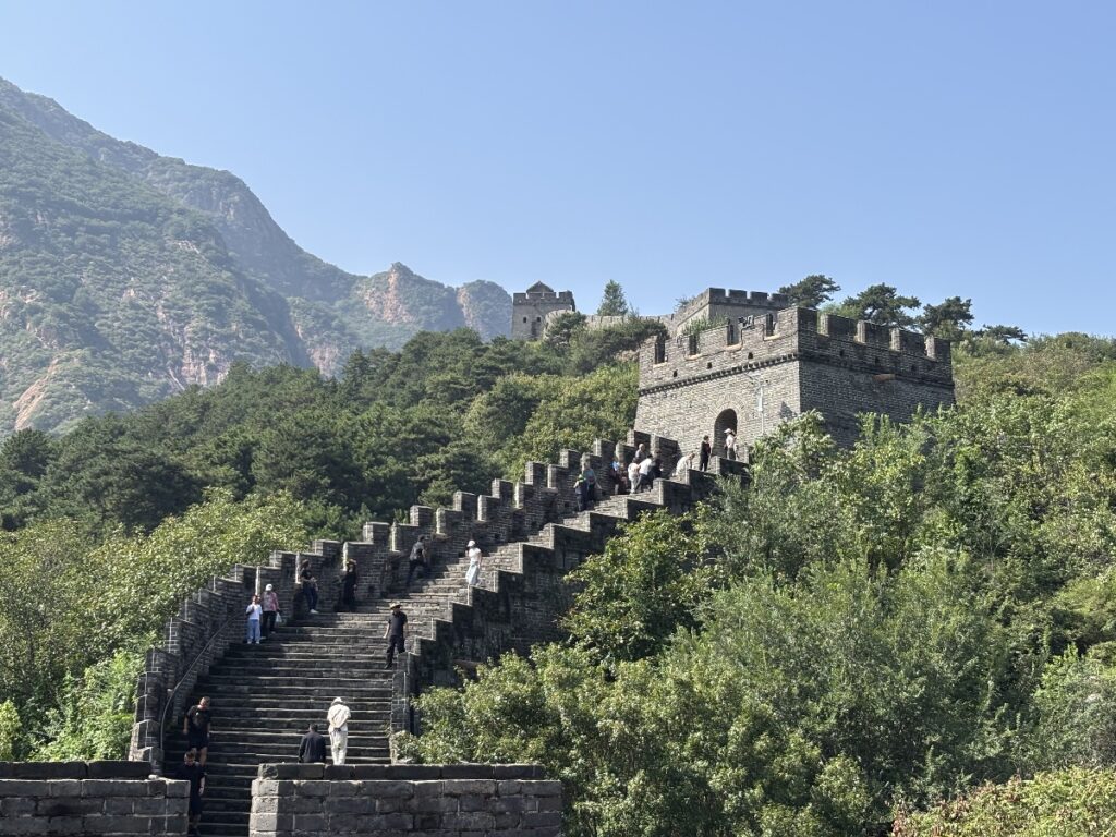 反対側の山には登ることができませんが、あのような険しい山に長城や櫓を築いたことに、驚嘆しました。