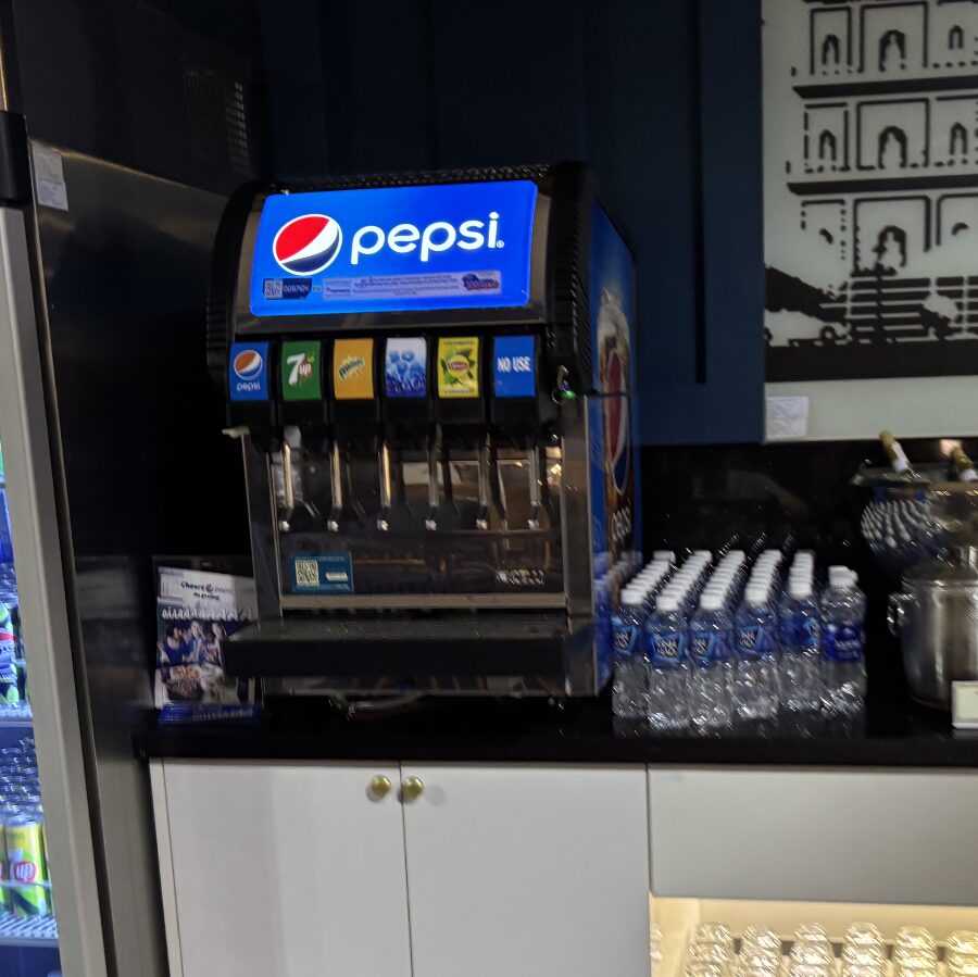 炭酸飲料(ペプシ、セブンアップなど)のドリンクバーやミネラルウォーターに加え、多くの缶ジュースも用意されています。