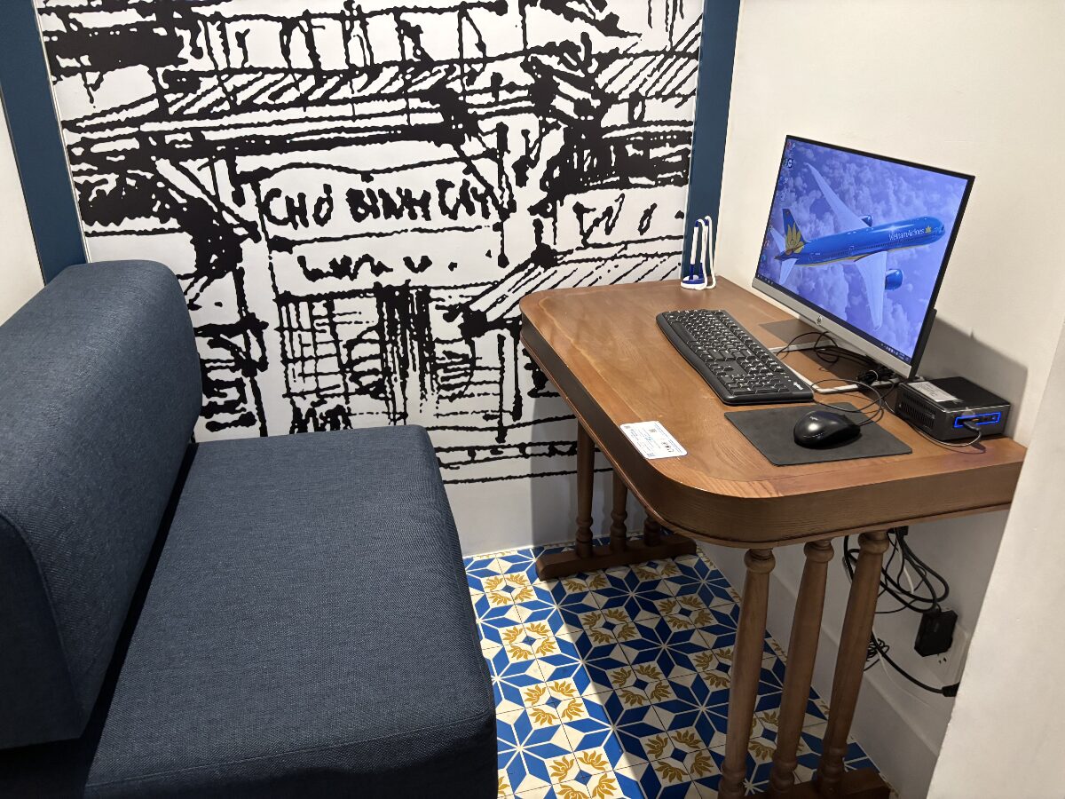 ラウンジの一番奥にはビジネスセンターがあり、パソコン付きの個室が4つ設置されています。