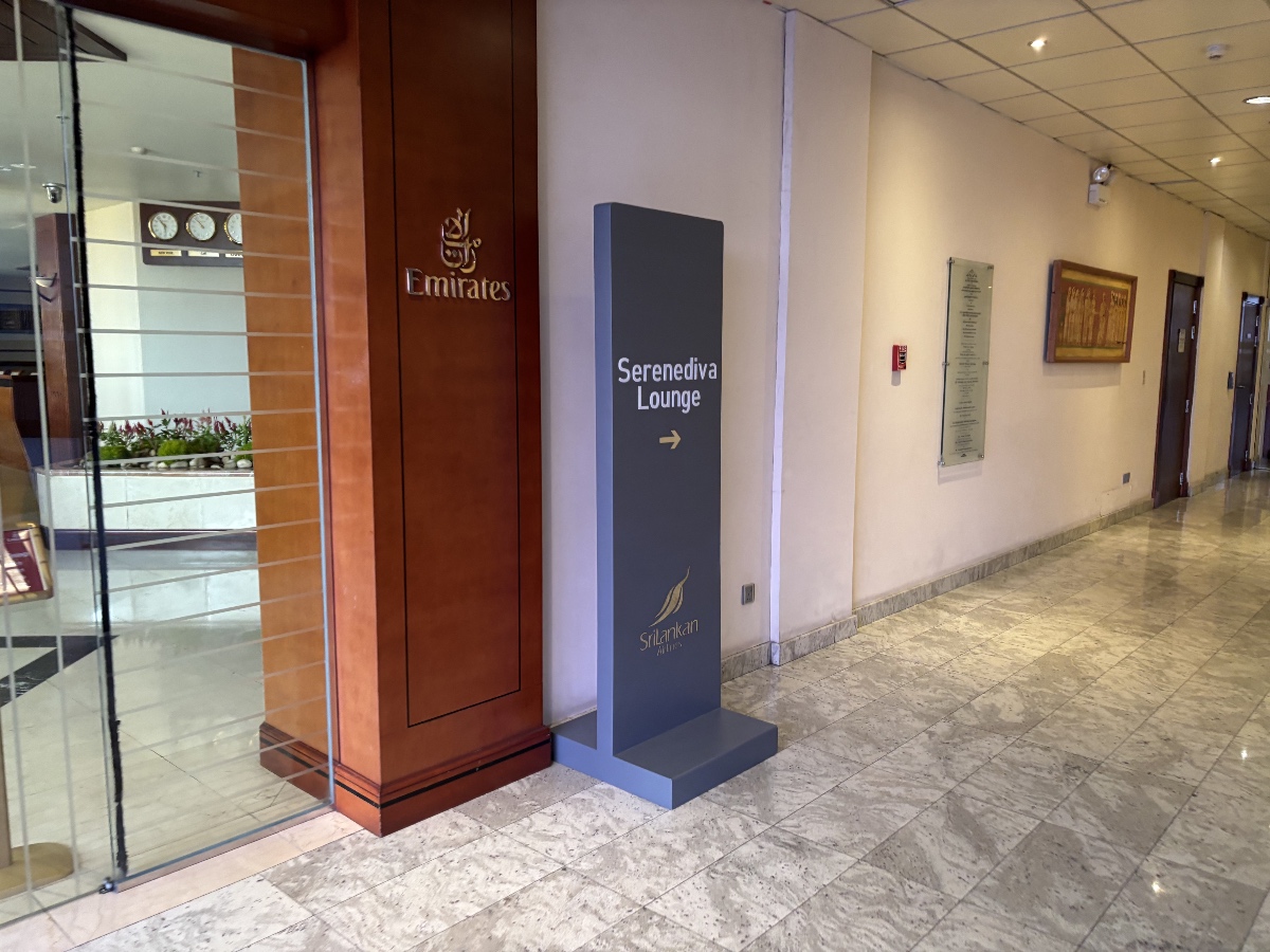 エレベーターを降りるとエミレーツ航空のラウンジがあります。Serendiva Loungeは、そのエミレーツラウンジのさらに奥に位置しています。
