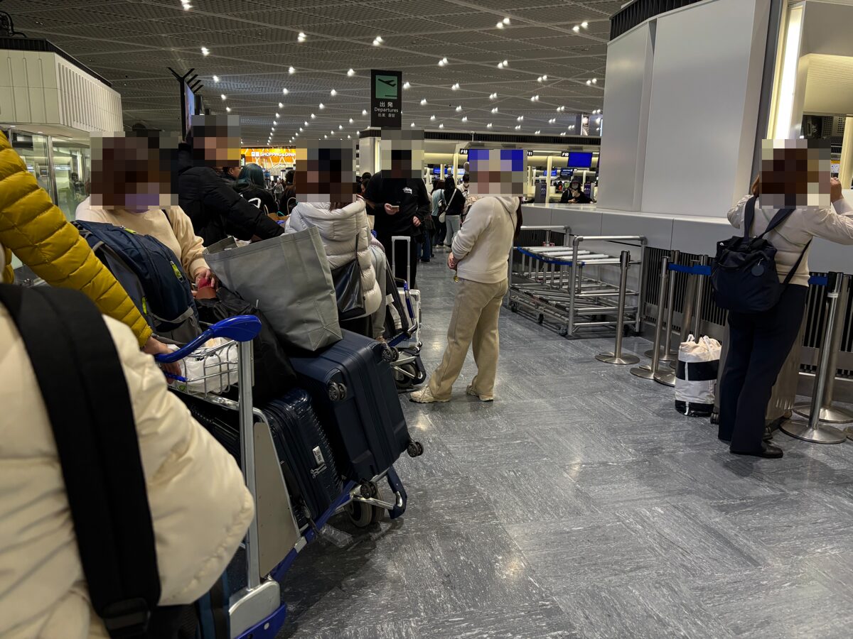 チェックインは2時間半前開始ですが、その時点で既に長蛇の列ができていることが多いため、早めに並ぶことをおすすめします。