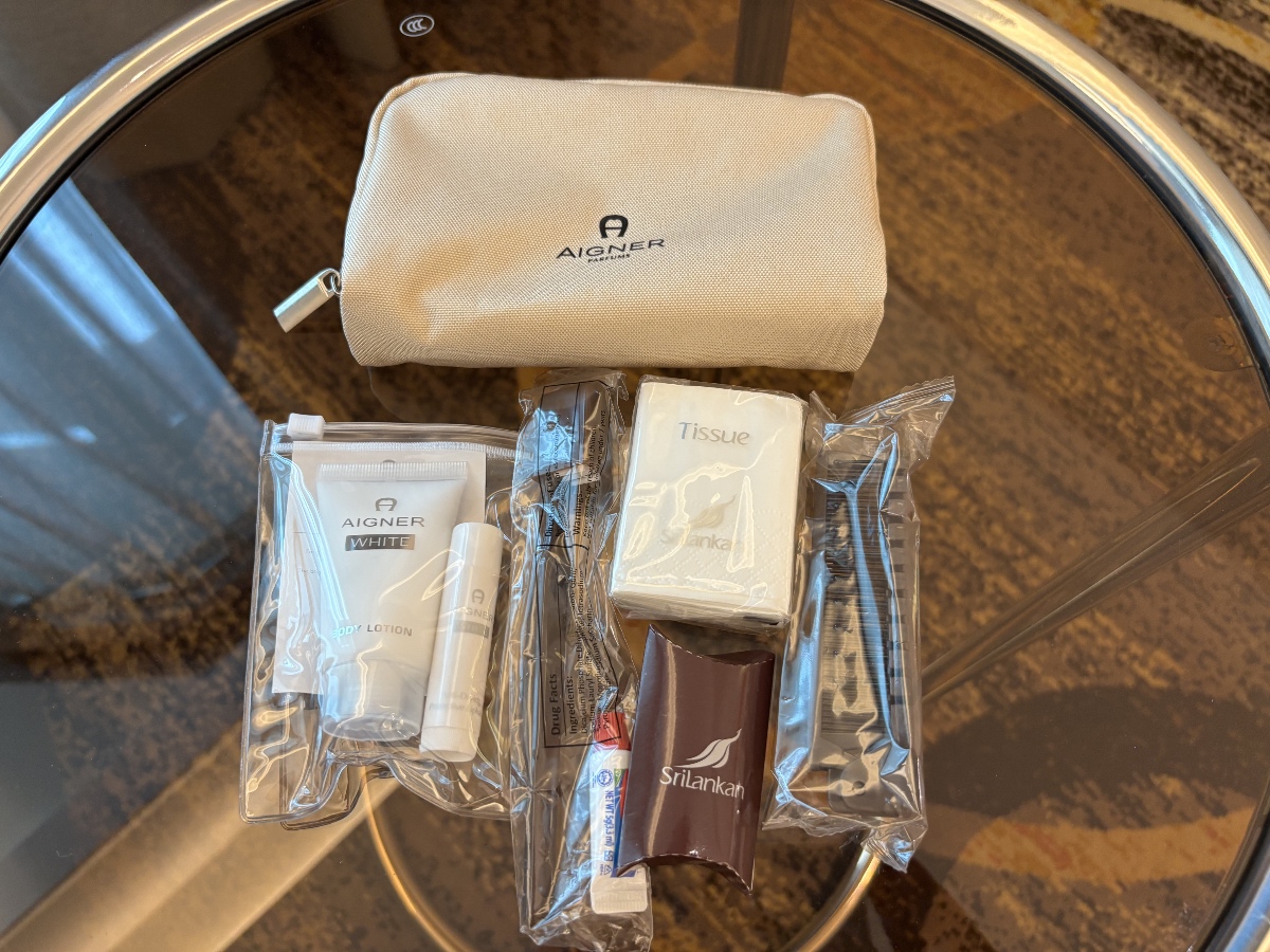 アメニティは、AIGNERのアメニティポーチが席に置かれていました。