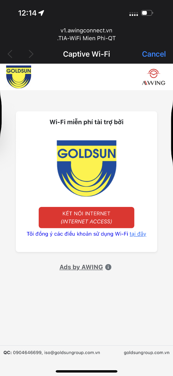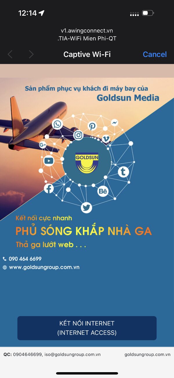 アクセスポイントで"TIA-WiFi Mien Phi-QT"を選択し、その後"KẾT NỐI INTERNET (INTERNET ACCESS)"を2回タップするとインターネットにアクセスできます。